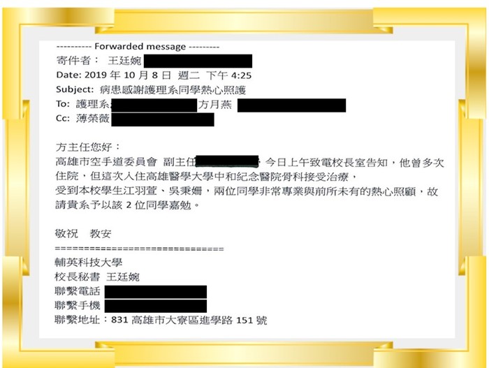 高醫骨科病患感謝實習生江羽萱、吳秉珊同學